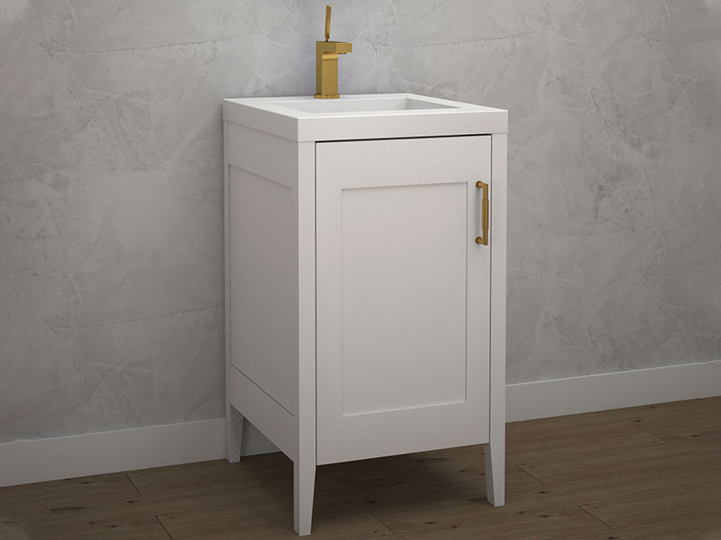 When thinking about how to measure for a bathroom vanity, it is also important to consider depth, door swing, trim clearance, and how much room is needed to move comfortably through the space. Our current assortment includes vanity depths of 10″, 18″, 20″, and 22″, giving more flexibility when planning layouts for both larger bathrooms and compact powder rooms.