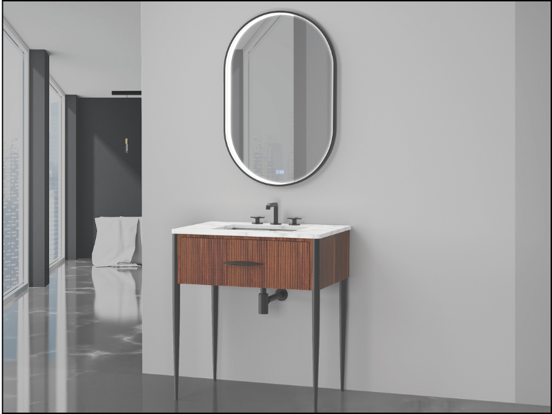 Mirror sizes should support the vanity rather than overpower it. In many cases, a mirror that is slightly narrower than the vanity creates the cleanest look, while taller mirrors can help draw the eye upward and make smaller spaces feel more open.