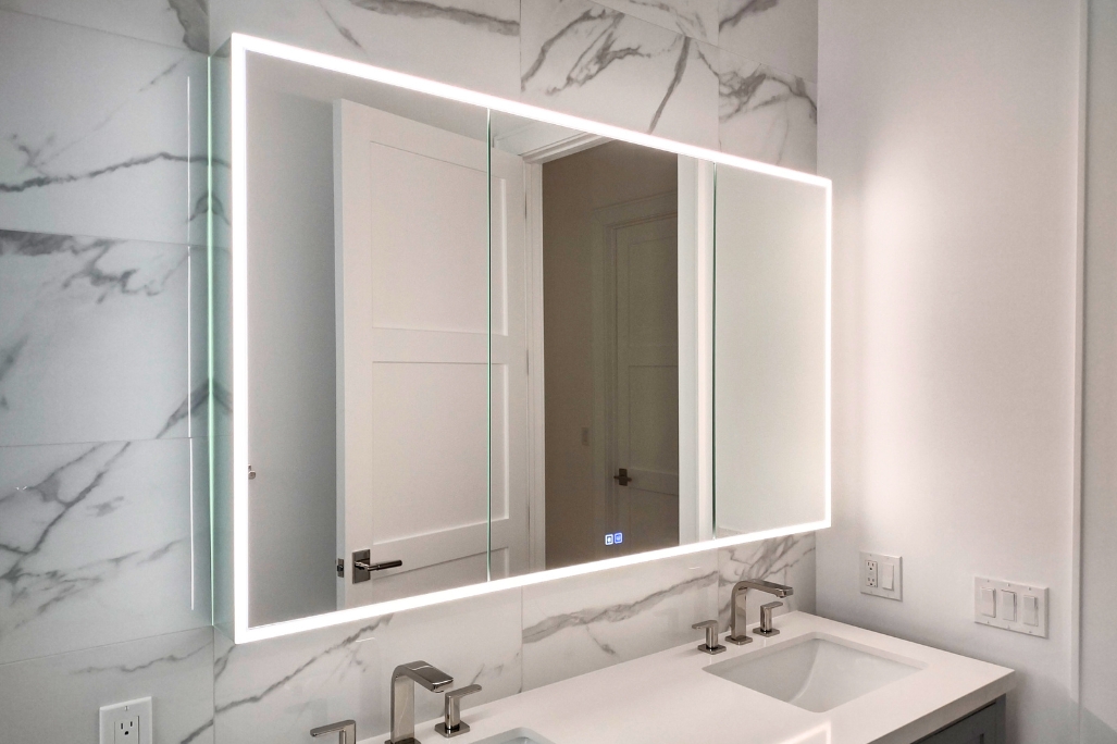 One of our most impressive large-scale installations took place in a luxury residential project in Greenwich, CT. Initially, the property owner installed a Madeli Lighted Mirrored Cabinet in his own home. He was so impressed with the sleek aesthetic, integrated lighting, and flawless functionality that he insisted on bringing the same product to the entire Greenwich development!