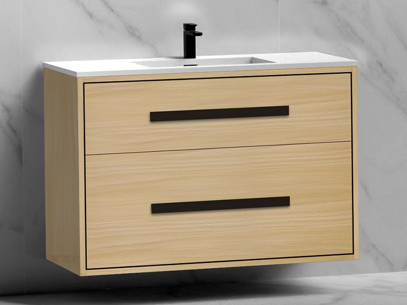 Crafted from solid wood, these drawers feature meticulous dovetail corners and a warm, inviting appearance. They are available exclusively with Natural Oak and Natural Walnut finish vanities.