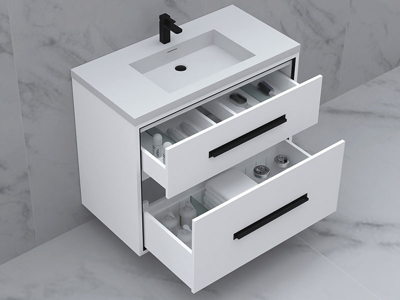 • 36" cabinet features 2 fully-adjustable drawers with full extension soft closing glides