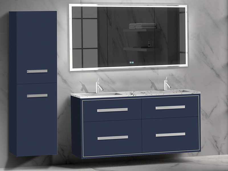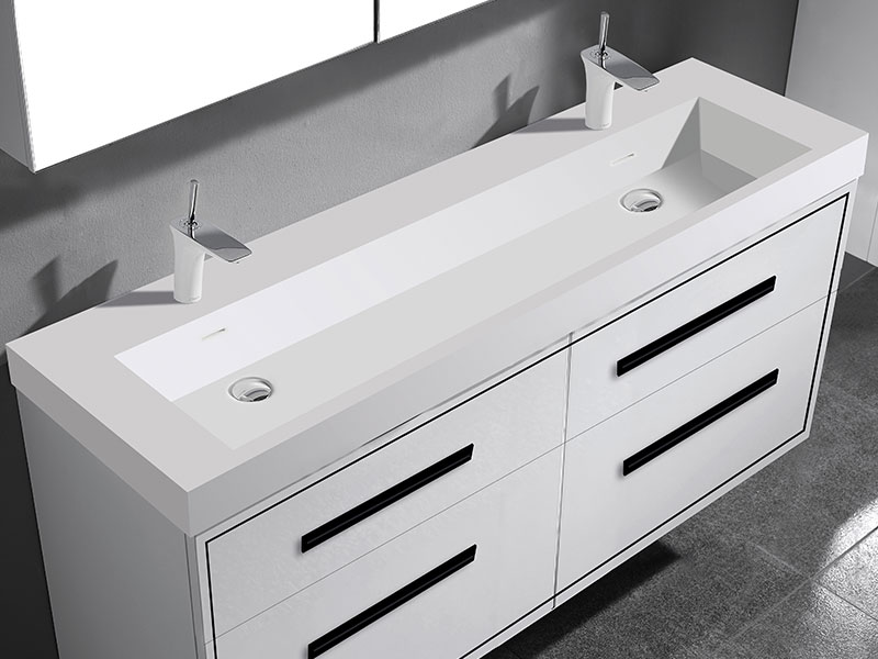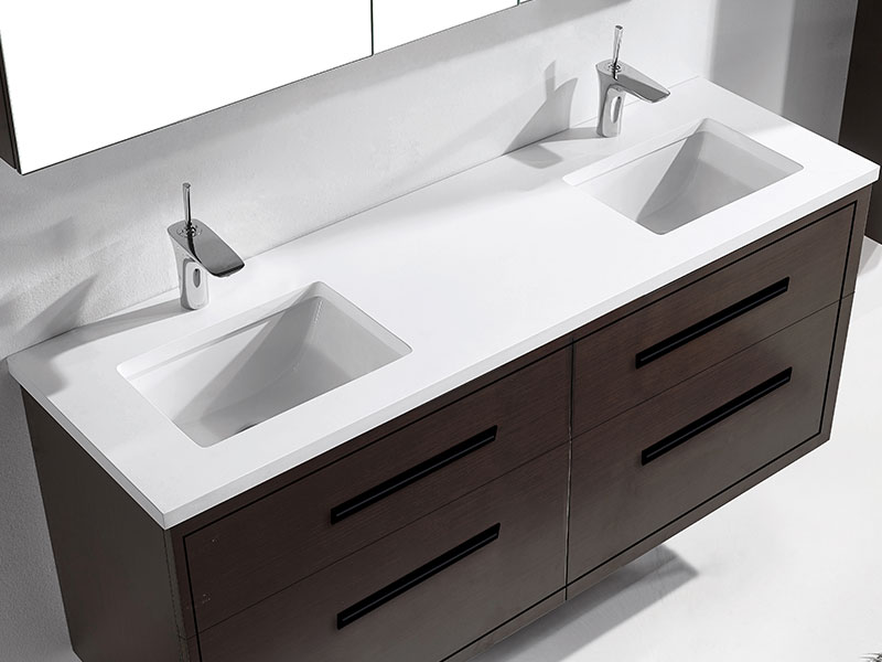 The Apogee Collection floating vanity is the perfect piece to add that clean modern flair to your bathroom, combined with more than a touch of glam. The luxurious and spacious design features two fully adjustable drawers in rich, polyurethane-protected color finishes including rich Walnut woodgrain, White, Studio Grey and Sapphire, beautifully contrasted with an finely crafted metal inlay trim in your choice of lustrous satin brass, matte black, polished chrome, polished nickel and brushed nickel. Matching sleek metal handles and decorative backplates add the crowning touch of elegance. An extensive choice of countertop/basin color and material options complete the design possibilities, including X-Stone™ Solid Surface, Quartzstone™, glass or ceramic. Premiere features including adjustable tempered glass dividers, full extension soft-closing glides, matching interior finishes and other signature Madeli features mean you’ll always have a perfect blend of beauty, quality and function.