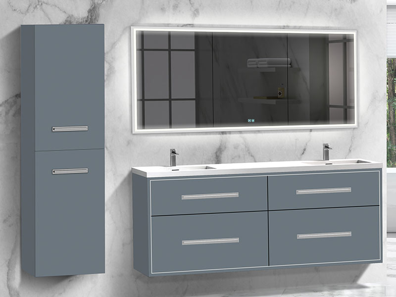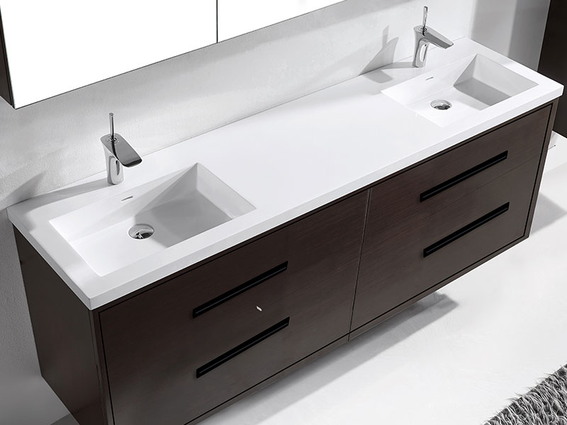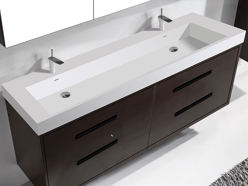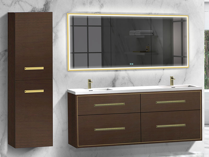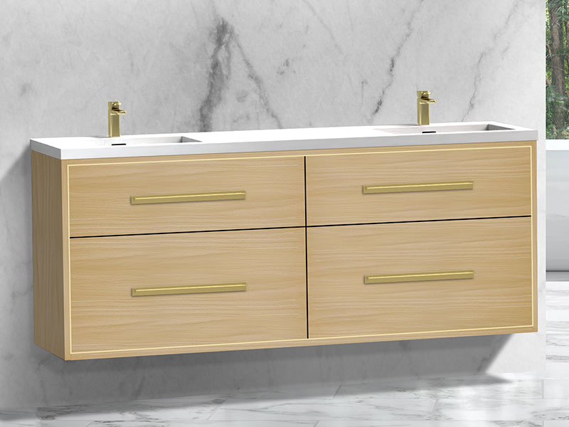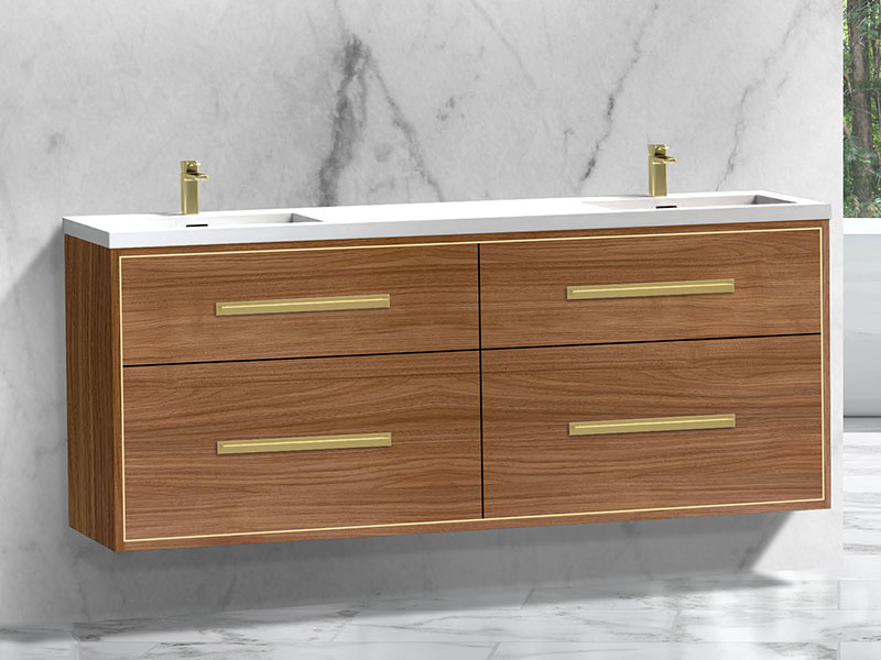 The Apogee Collection floating vanity is the perfect piece to add that clean modern flair to your bathroom, combined with more than a touch of glam. The luxurious and spacious design features two fully adjustable drawers in rich, polyurethane-protected color finishes including rich Coastal Grey, Natural Oak, Natural Walnut, Walnut woodgrain, White, Studio Grey and Sapphire, beautifully contrasted with an finely crafted metal inlay trim in your choice of lustrous satin brass, matte black, polished chrome, polished nickel and brushed nickel. Matching sleek metal handles and decorative backplates add the crowning touch of elegance. An extensive choice of countertop/basin color and material options complete the design possibilities, including X-Stone™ Solid Surface, Quartzstone™, glass or ceramic. Premiere features including adjustable tempered glass dividers, full extension soft-closing glides, matching interior finishes and other signature Madeli features mean you’ll always have a perfect blend of beauty, quality and function.
