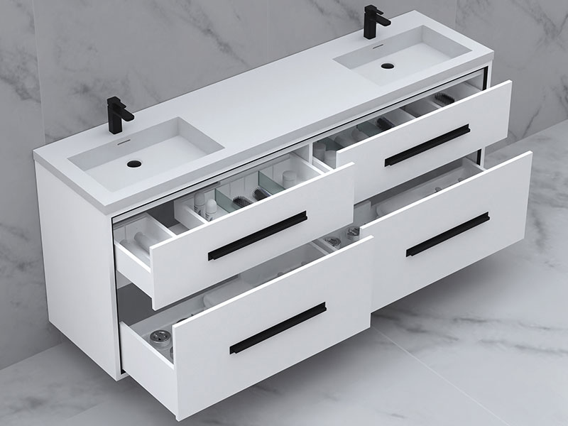 • 72" cabinet features 4 fully-adjustable drawers with full extension soft closing glides