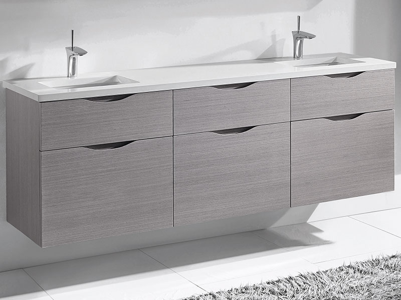 Shown with 3/4"H Silver Grey Quartzstone double top/basin QSA1812-72-2XX-VG