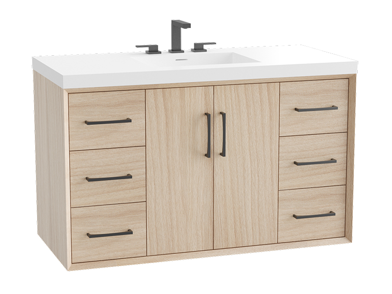 Available with 2 different styles of handles: Mid-Century, and Trendsitional. Available in five finishes - Polished Chrome, Brushed Nickel, Polished Nickel, Matte Black, and Satin Brass.