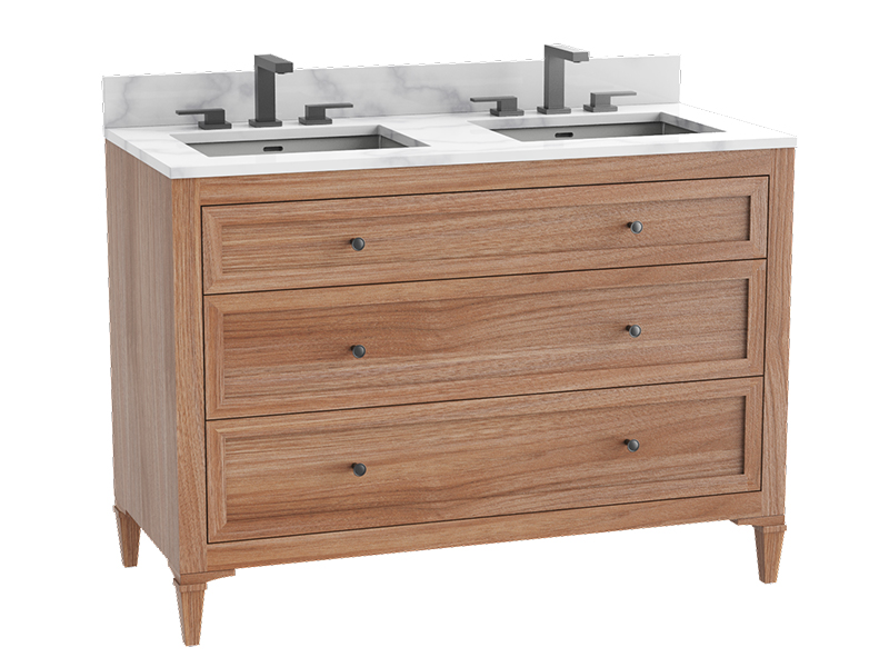 This timeless Heirloom embodies quintessential charm with its familiar shaker lines and family-friendly storage, perfect for modern families. The attractive scale of the drawers feels perfectly balanced, creating a sense of harmonious proportion that is both pleasing to the eye and highly functional. This beautiful combination of classic form and graceful design details ensures the vanity feels instantly at home, adding a touch of enduring style to any bathroom.