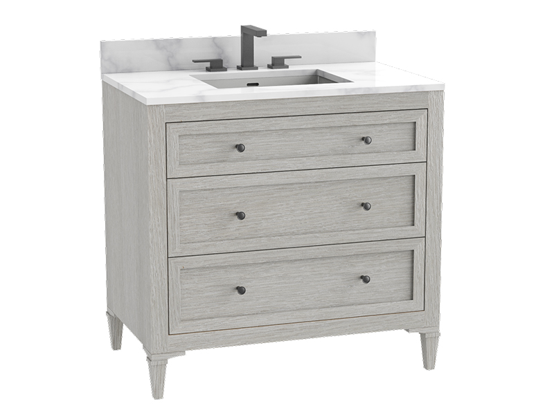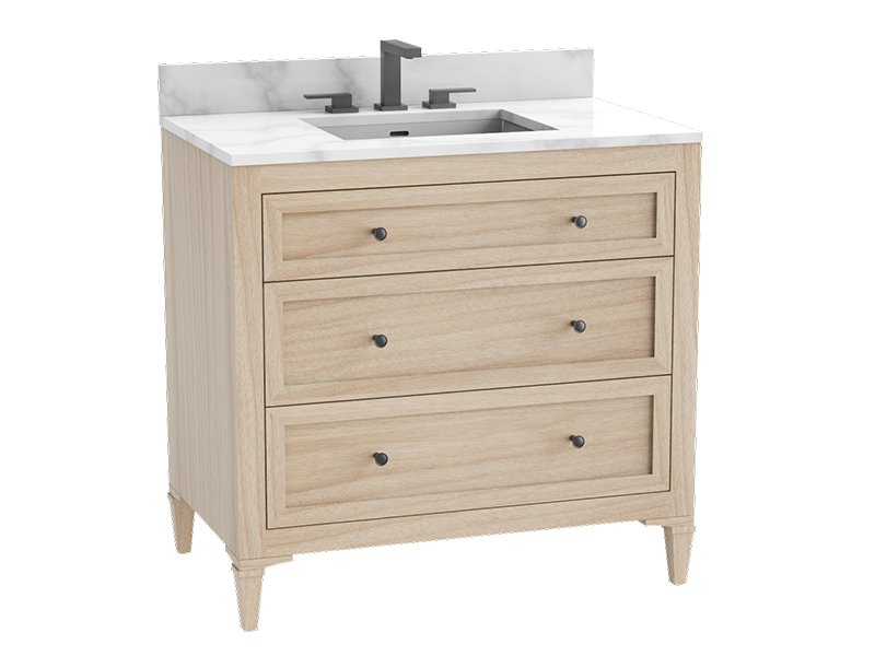 This timeless Heirloom embodies quintessential charm with its familiar shaker lines and family-friendly storage, perfect for modern families. The attractive scale of the drawers feels perfectly balanced, creating a sense of harmonious proportion that is both pleasing to the eye and highly functional. This beautiful combination of classic form and graceful design details ensures the vanity feels instantly at home, adding a touch of enduring style to any bathroom.