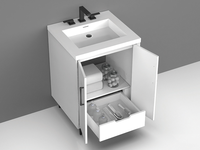 • Quartzstone 3"H countertop with Ceramic basin CB-2015-WH