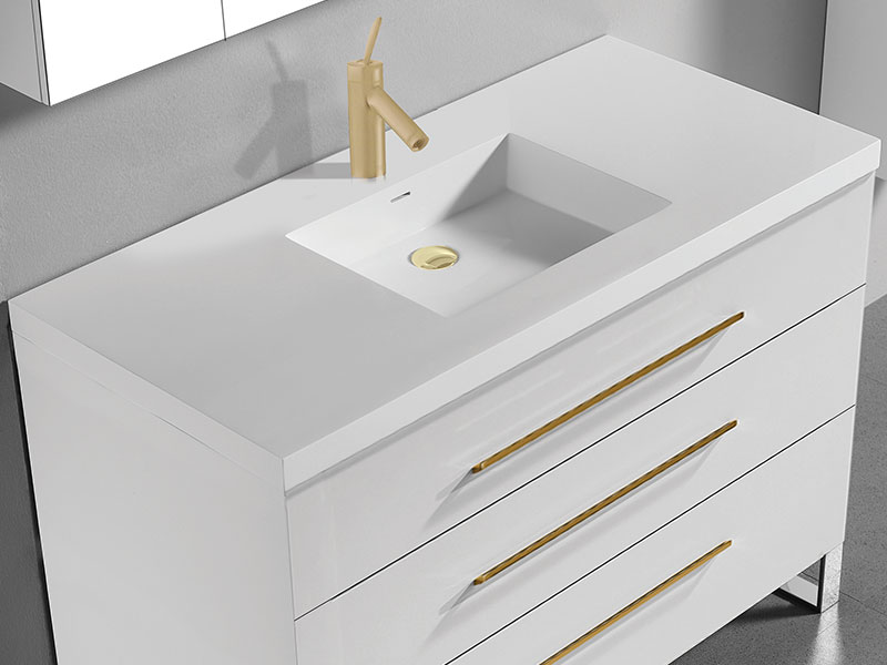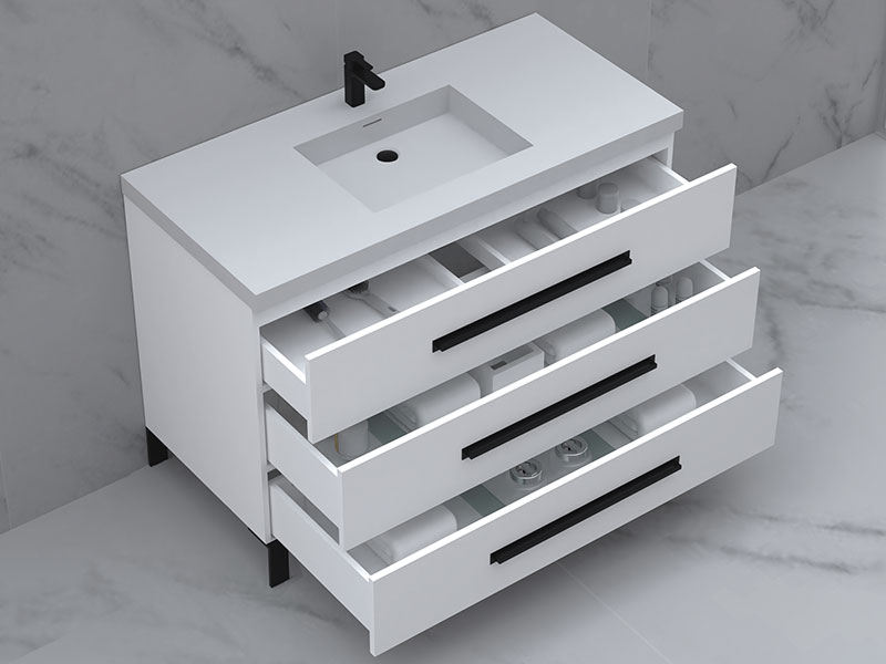 • 48" cabinet features 3 fully-adjustable drawers with full extension soft closing glides