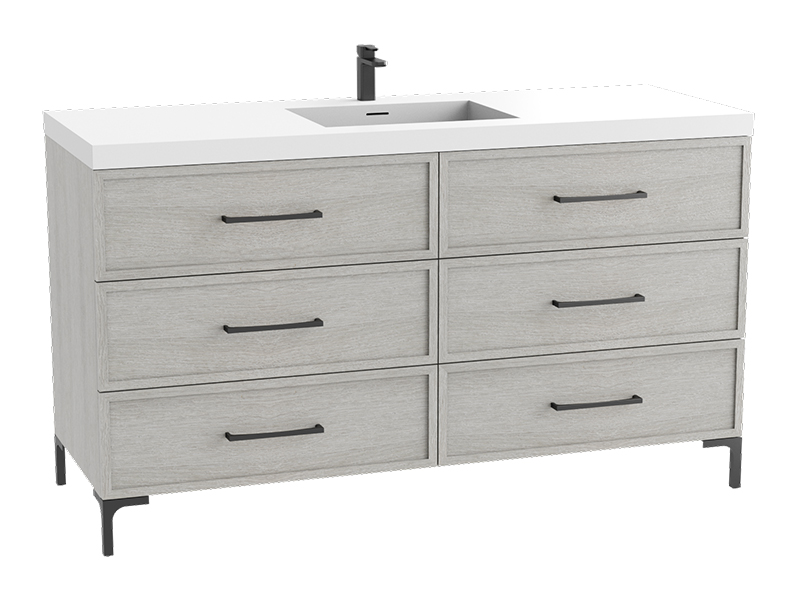 Collections are paired with three different styles of handles and feet suites: Mid-Century,