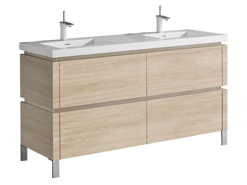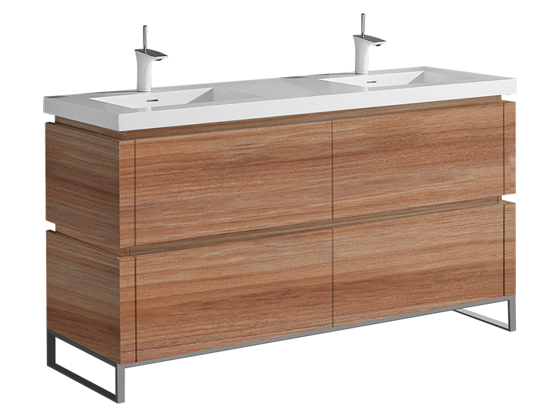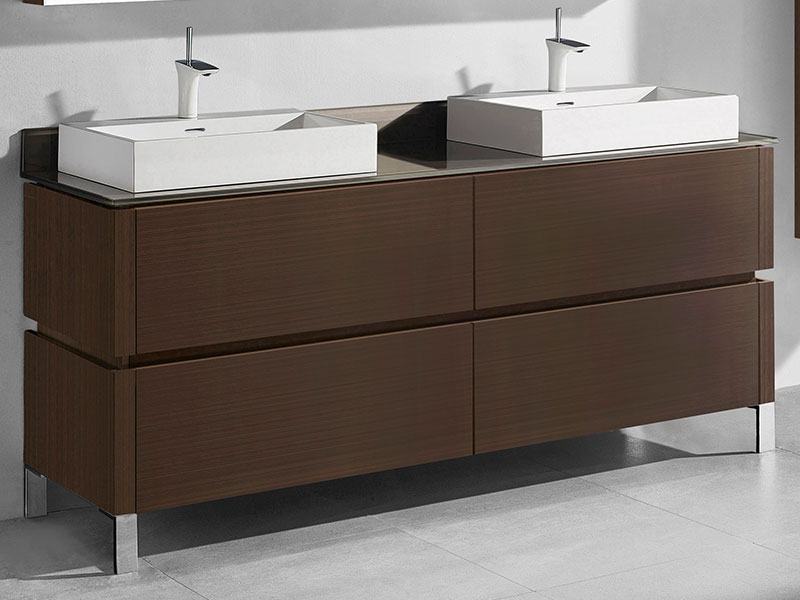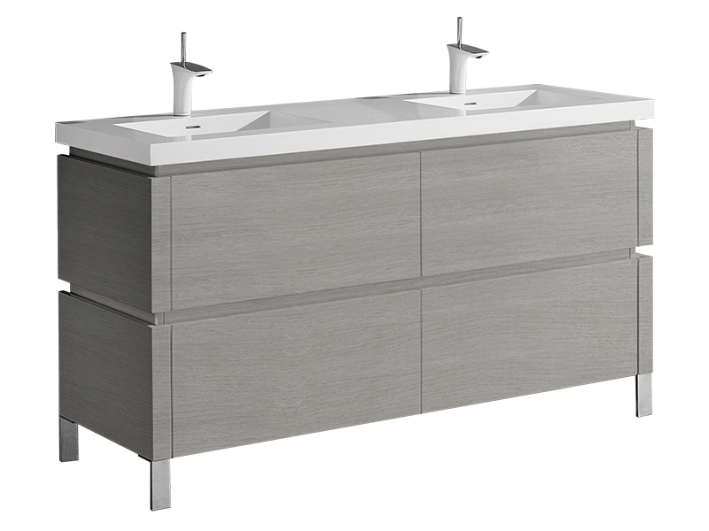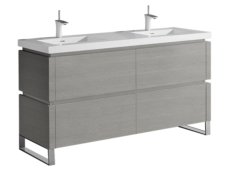 Featuring straight lines and sophisticated design, the Metro Collection offers Italian-style integrated continuous handles, a larger than average 28" height for extra storage space, deep drawers with full 18”-extension Grasshopper® soft-closing glides and concealed interior drawers. Choose from a rich Walnut or Ash Grey woodgrain or a White polyurethane-protected finish. Choice of countertops and basins include X-Stone™ Solid Surface, Quartzstone™ and a pristine glass top with ceramic bowls in White or Biscuit. Available with your choice of the simple L-feet or open rectangular S-feet in polished chrome or brushed nickel, the Metro’s sleek, modern lines coupled with its unprecedented storage space are the fullest embodiment of Madeli’s Functional Elegance motto.