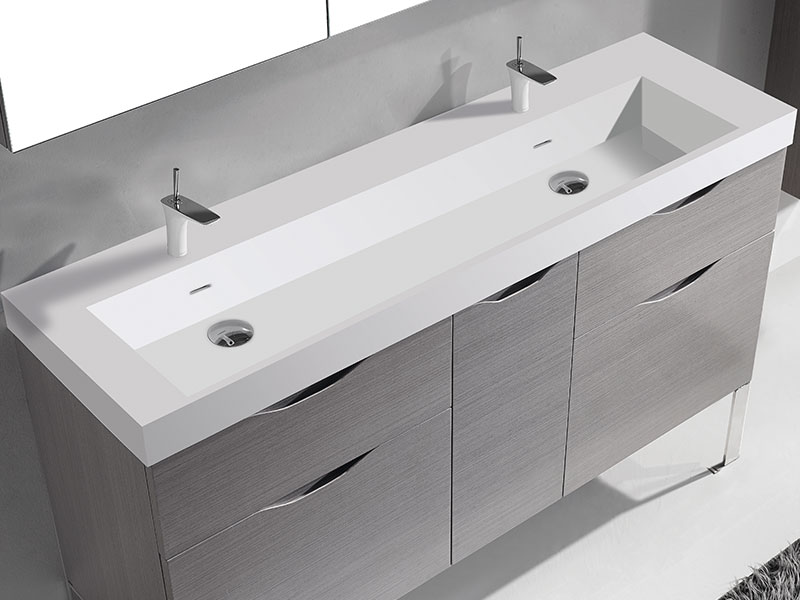 Shown with 3/4"H White Quartzstone double top/basin QSA1812-60-2XX-WH