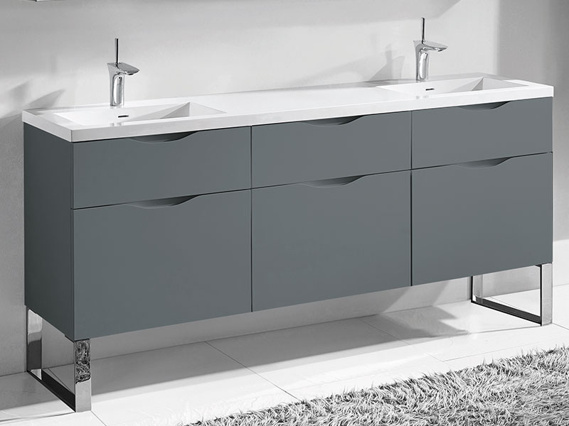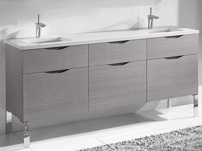 Shown with 3/4"H Silver Grey Quartzstone double top/basin QSA1812-72-2XX-VG