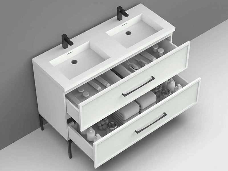 Collections are paired with three different styles of handles and feet suites: Mid-Century,