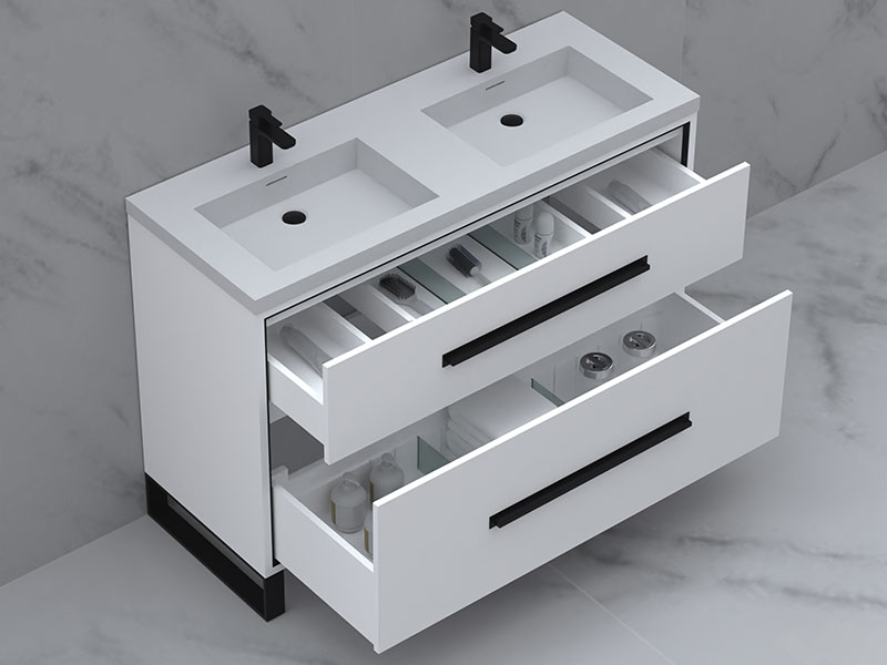 • 48" cabinet features 2 fully-adjustable drawers with full extension soft closing glides