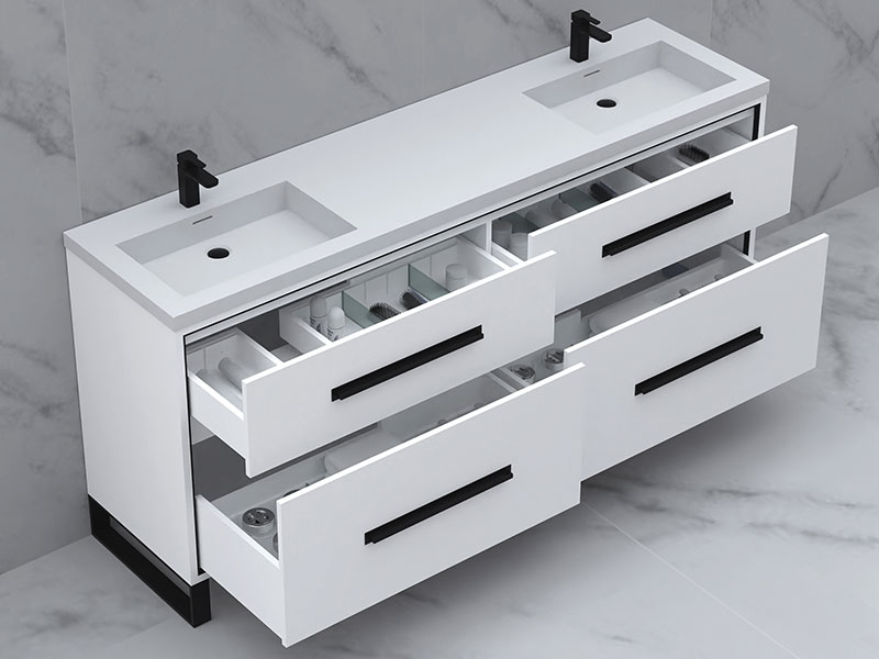 • 60" cabinet features 4 fully-adjustable drawers with full extension soft closing glides