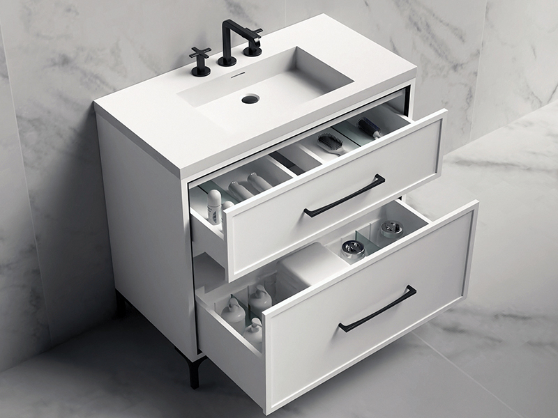 Collections are paired with three different styles of handles and feet suites: Mid-Century,