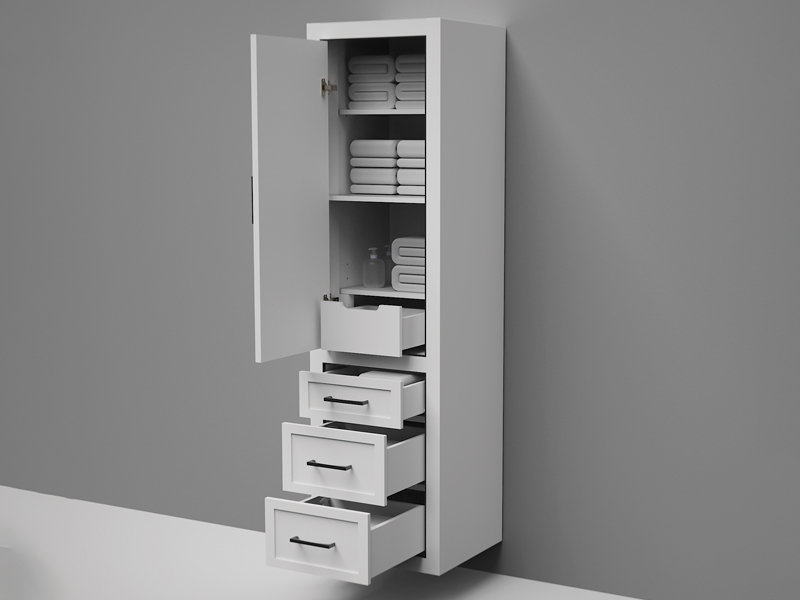 The collections include four-bathroom vanities and two matching linen cabinets. Customize your look with a choice of three handle styles—Mid-Century, Trendsitional™ , and Contempo™—all available in five versatile finishes: Polished Chrome, Brushed Nickel, Polished Nickel, Matte Black, and Satin Brass; or choose to have no drawer holes drilled. Premiere features include adjustable tempered glass dividers, drawer organizer bins, optional electrical outlets, full extension soft-closing glides and other signature Madeli details.
