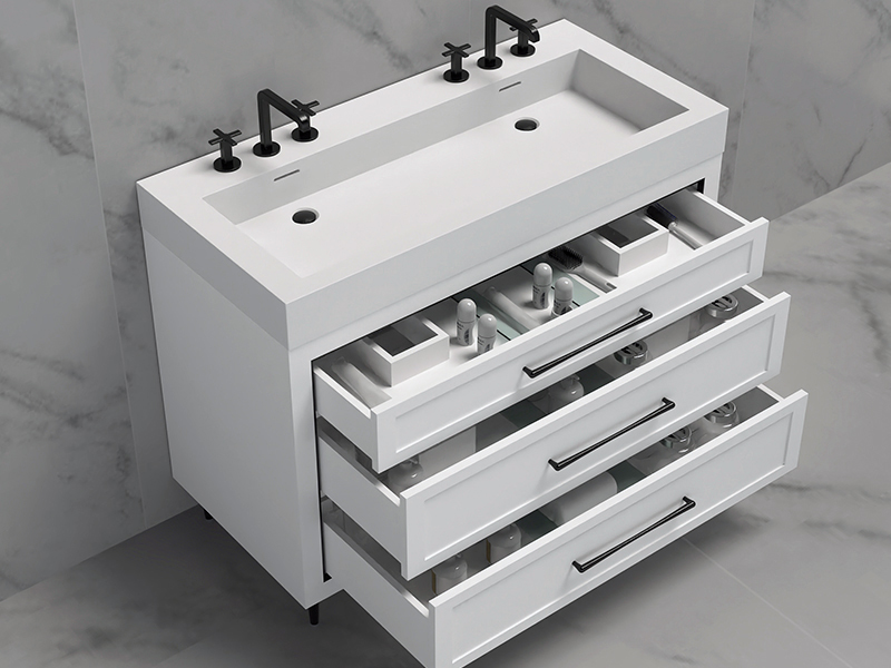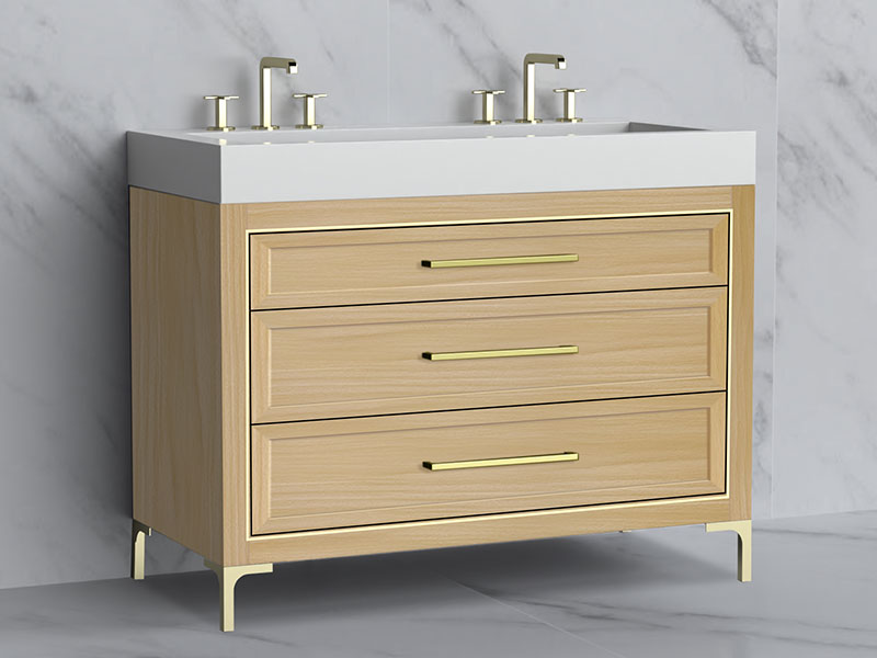 Crafted from solid wood, these drawers feature meticulous dovetail corners and a warm, inviting appearance. They are available exclusively with Natural Oak and Natural Walnut finish vanities.