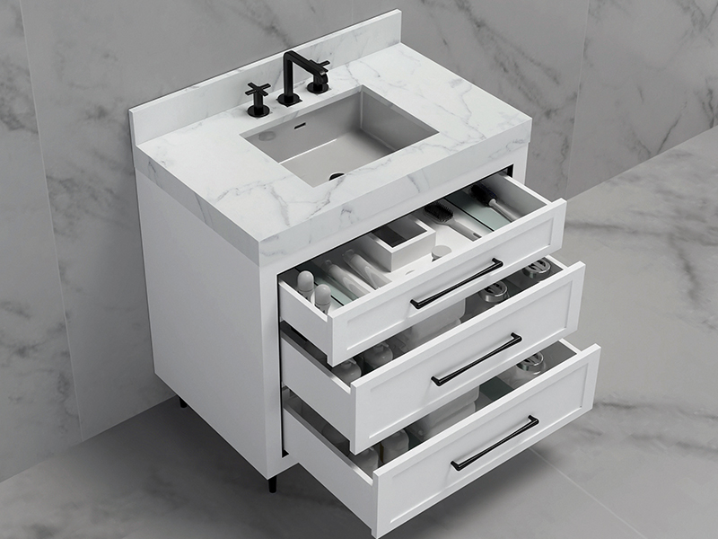 • Quartzstone 3"H countertop with Ceramic Basin basin