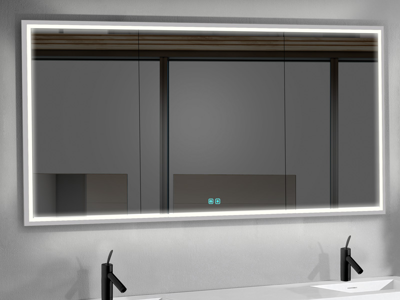 Following our tradition of Functional Elegance, Madeli is proud to introduce the recessed mount Illusion Mirrored Cabinet Collection. Our lighted perimeter frame is unique; it allows the door to operate independently while providing clear, consistent light. The exclusive Acrylens™ light diffuser offers three-directional lighting: frontal, side glow and interior lighting. Dimmable at the touch, the Lumen Touch™ Switch Technology offers warm 2700 kelvin mood or daylight 4000 kelvin task lighting right at your fingertips. The independent, built-in defogger keeps your mirror moisture free. Complements include 120V and USB outlets, an adjustable magnifying mirror, cosmetic tray, cell phone holder, roll-up cord management, toothbrush, hand shaver, and tweezer accessories.